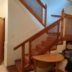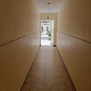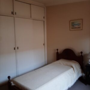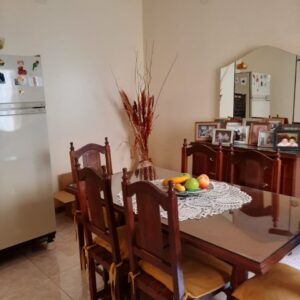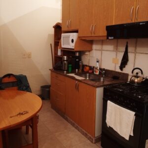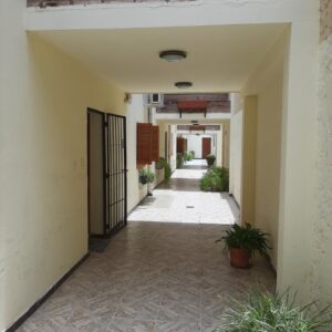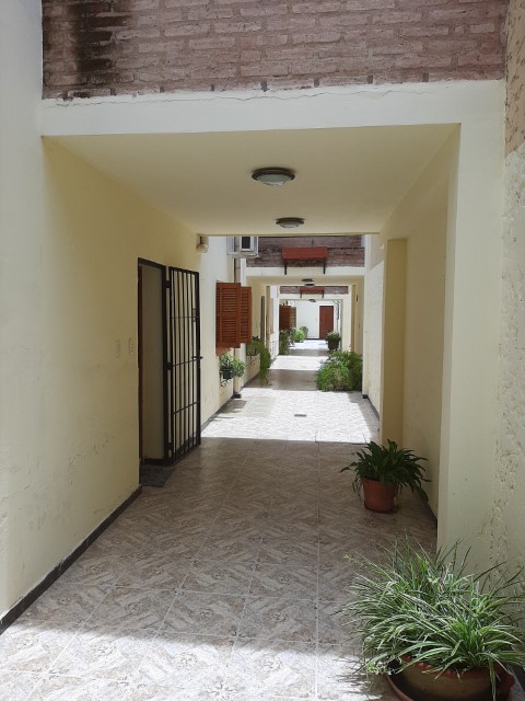 El departamento es de tipo dúplex con un ingreso modesto y en un complejo de varias unidades dispuestas hacia lo largo. Es decir, no tiene unidades en su espacio aéreo. Cuenta con cocina, living, comedor, toilette. En la planta alta dos dormitorios con sus placares, baño principal y lavadero.